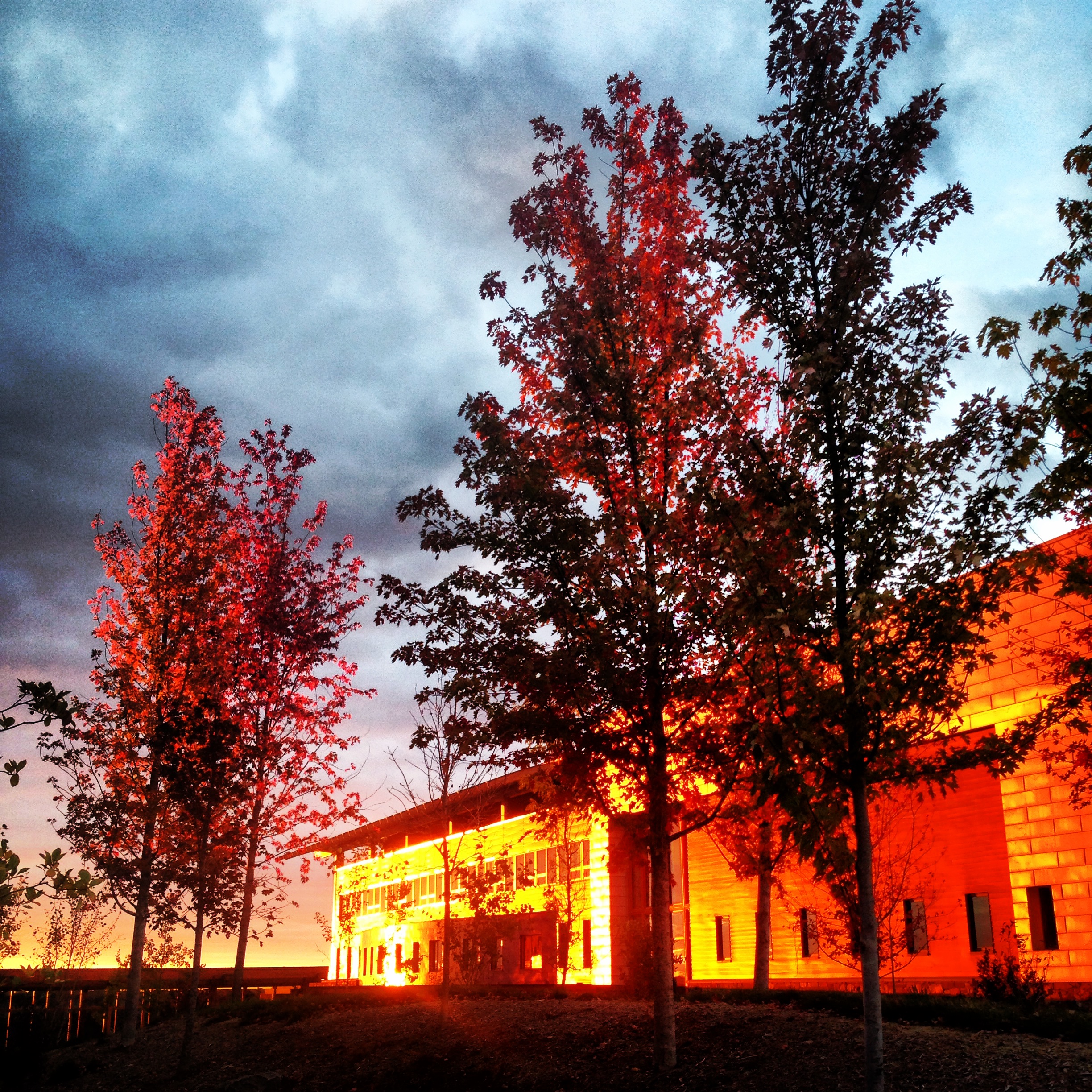 morning sun reflections on another office building.