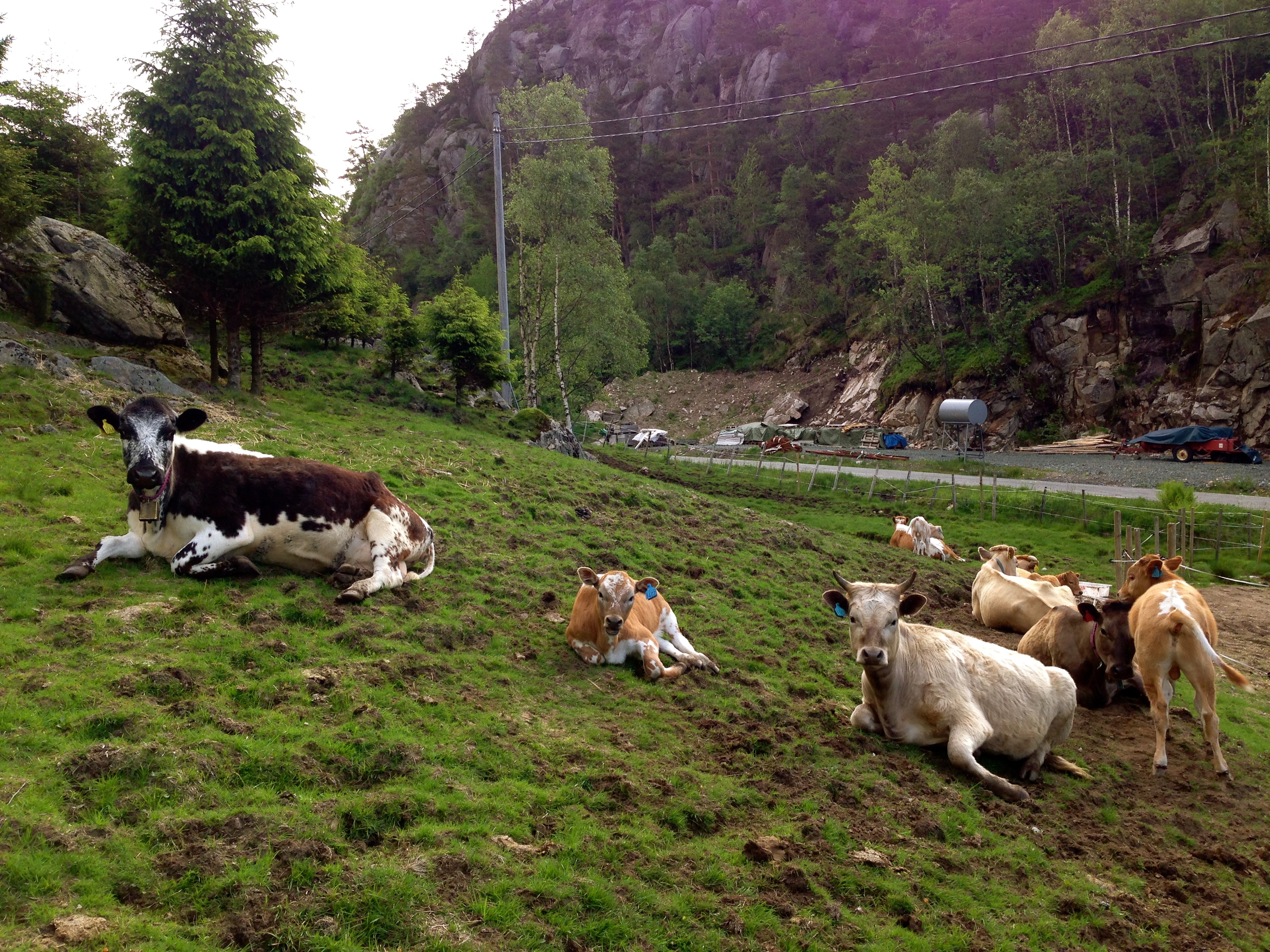 Poor Curly. He looks so ridiculously awkward, he’s almost cute. Apparently he spent a little too long inside his real mom, and came out with some big, crusty, stumpy horns. He’s got these tall skinny legs, with a round oval belly (I believe I am contributing greatly to that roundness) and sleepy eyes on tiny head with black and white splotches everywhere. And I love him.