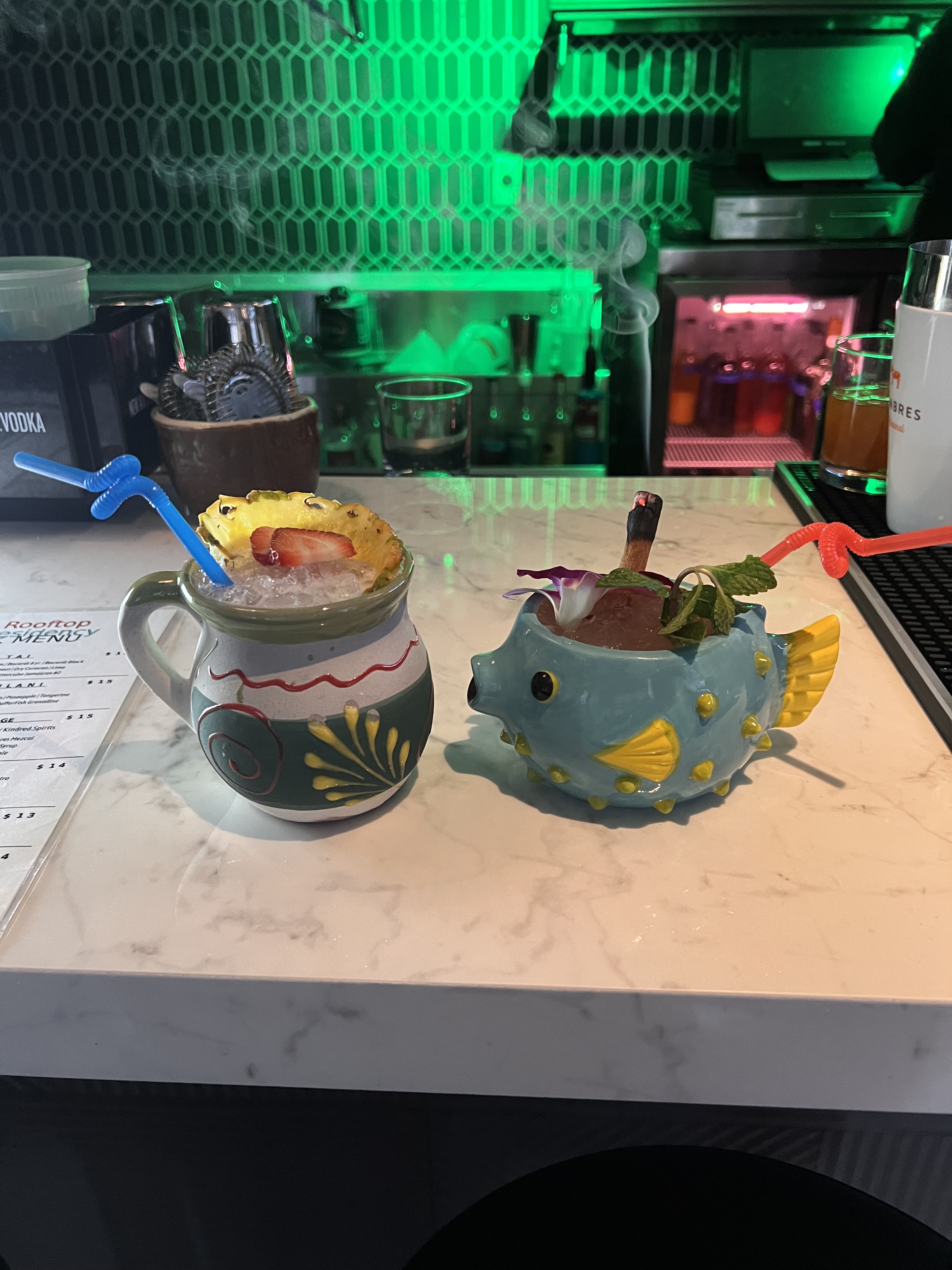 Pufferfish @ Pufferfish | drinking the Pufferfish on a Wisconsin rooftop in 16° weather | to-go fish cup o’wine.