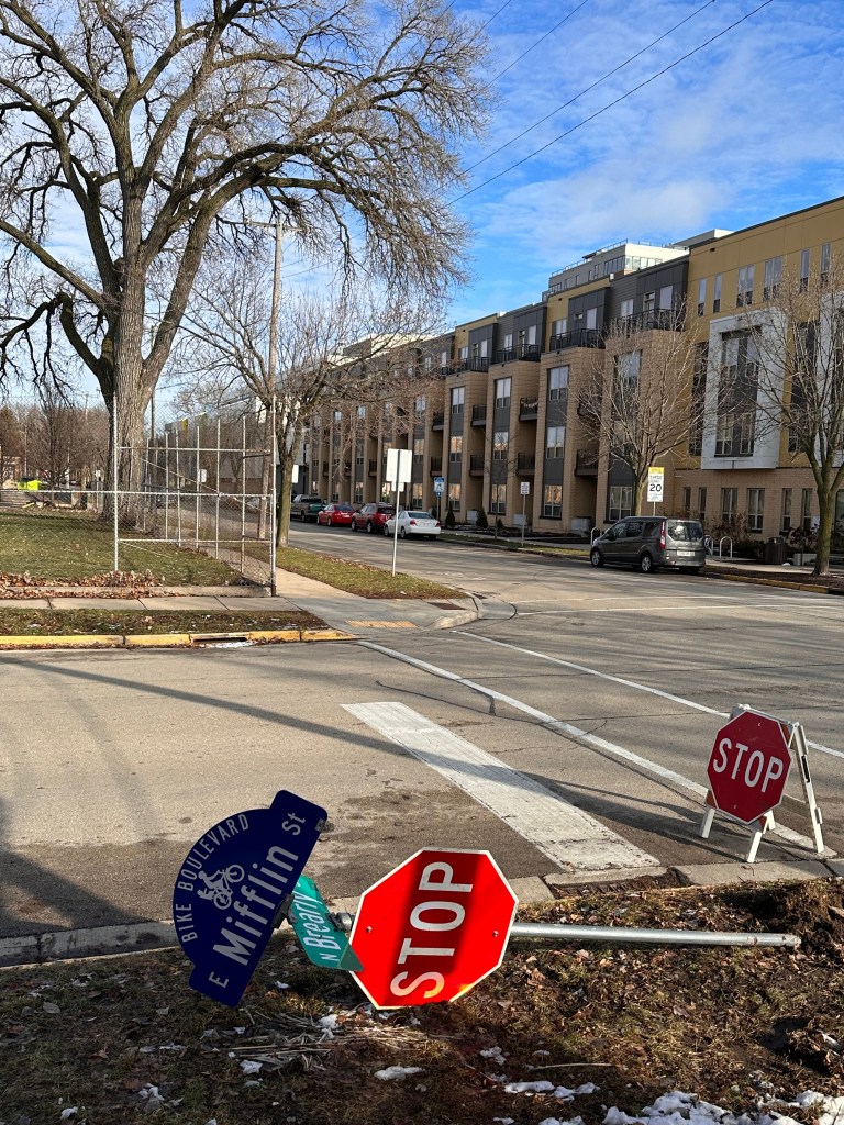 Took me a second to piece together who was driving what, but hooooolyyy sheeeet, felt like my dude was pushing 60 when he clipped the tail of the car (who did have the stop sign, but in any normal situation, with all players going the 20 mph posted speed limit, had plenty of time to clear any cross traffic) sending the other driver into a quick spin before taking out the stop sign, greatly reducing the final blow to my house.